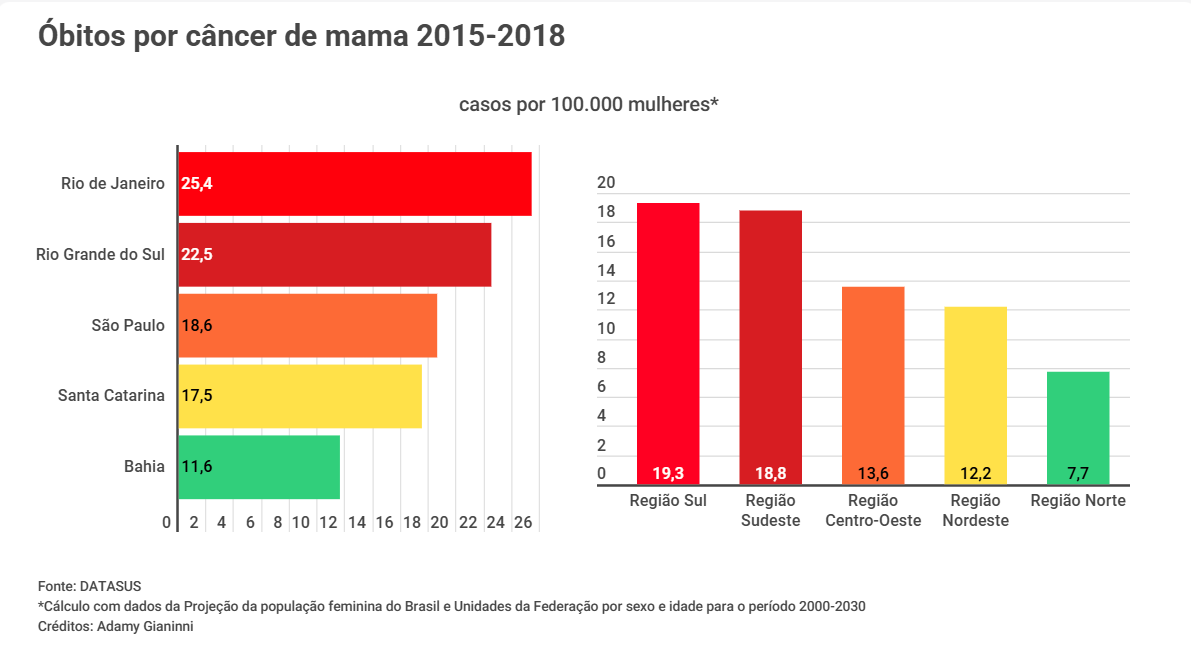 A taxa de mortalidade de câncer de mama no Brasil é baixa, totalizando 16,6 casos por 100 mil mulheres em 2018 (dados de projeção da população feminina segundo Unidade da Federação), porém a taxa de incidência é alta, mas o diagnóstico na fase inicial garante um tratamento mais eficaz e é esse o objetivo da Unidade Móvel do Hospital da Mulher.